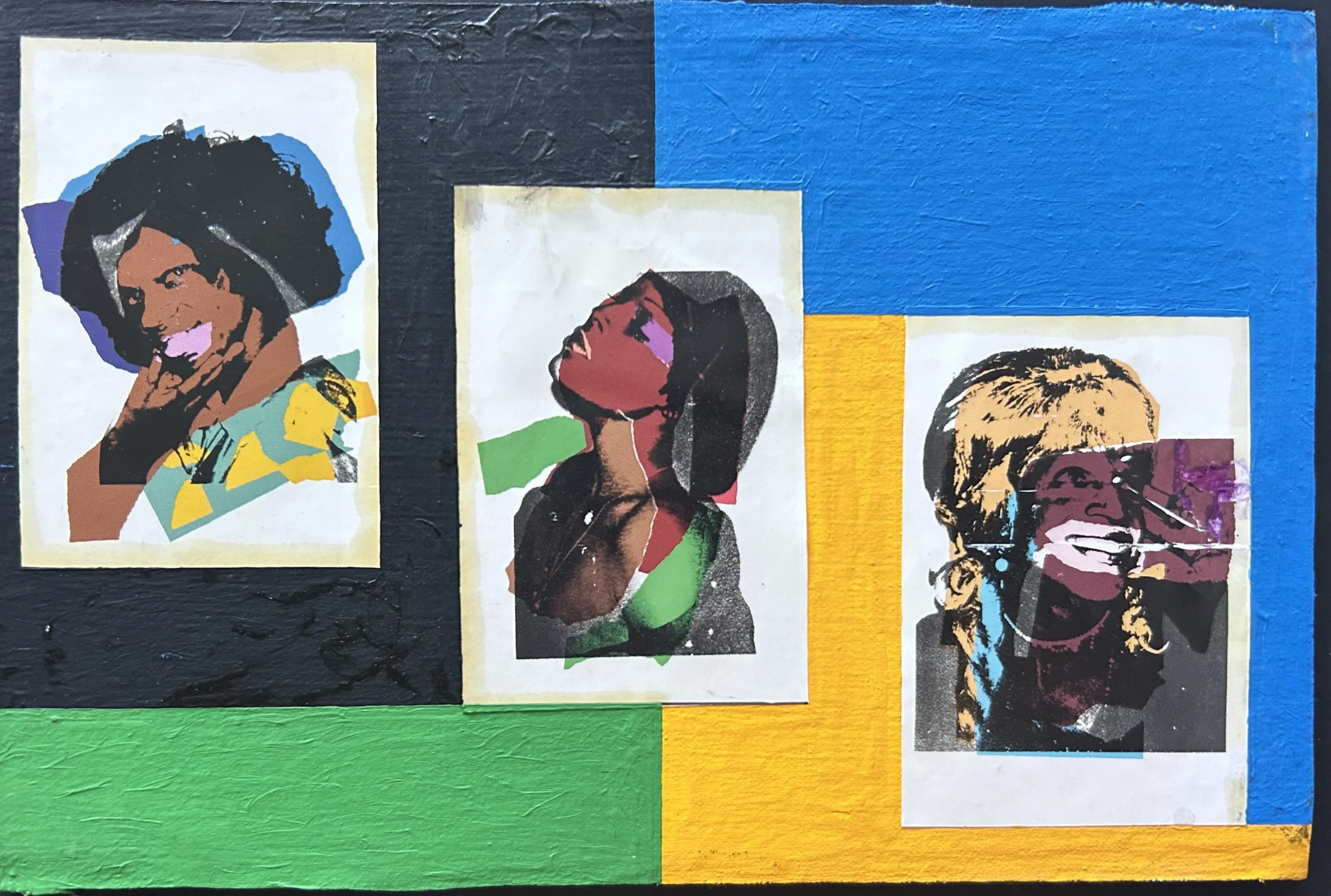 • Titel: Abstrakte Komposition mit collagierten Drucken