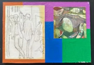 • Titel: Abstrakte Komposition mit collagierten Drucken
