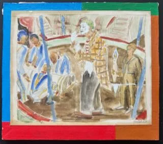 Bruno Dunst (1940–2023), HAPP – Abstrakte Komposition mit collagierten Drucken, Öl/Collage auf Platte.