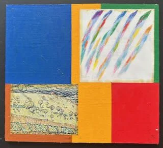 • Titel: Abstrakte Komposition mit collagierten Drucken