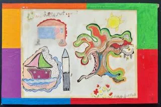 - Titel: Abstrakte Komposition mit collagierten Drucken