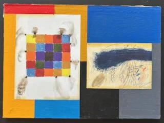 - Titel: Abstrakte Komposition mit collagierten Drucken