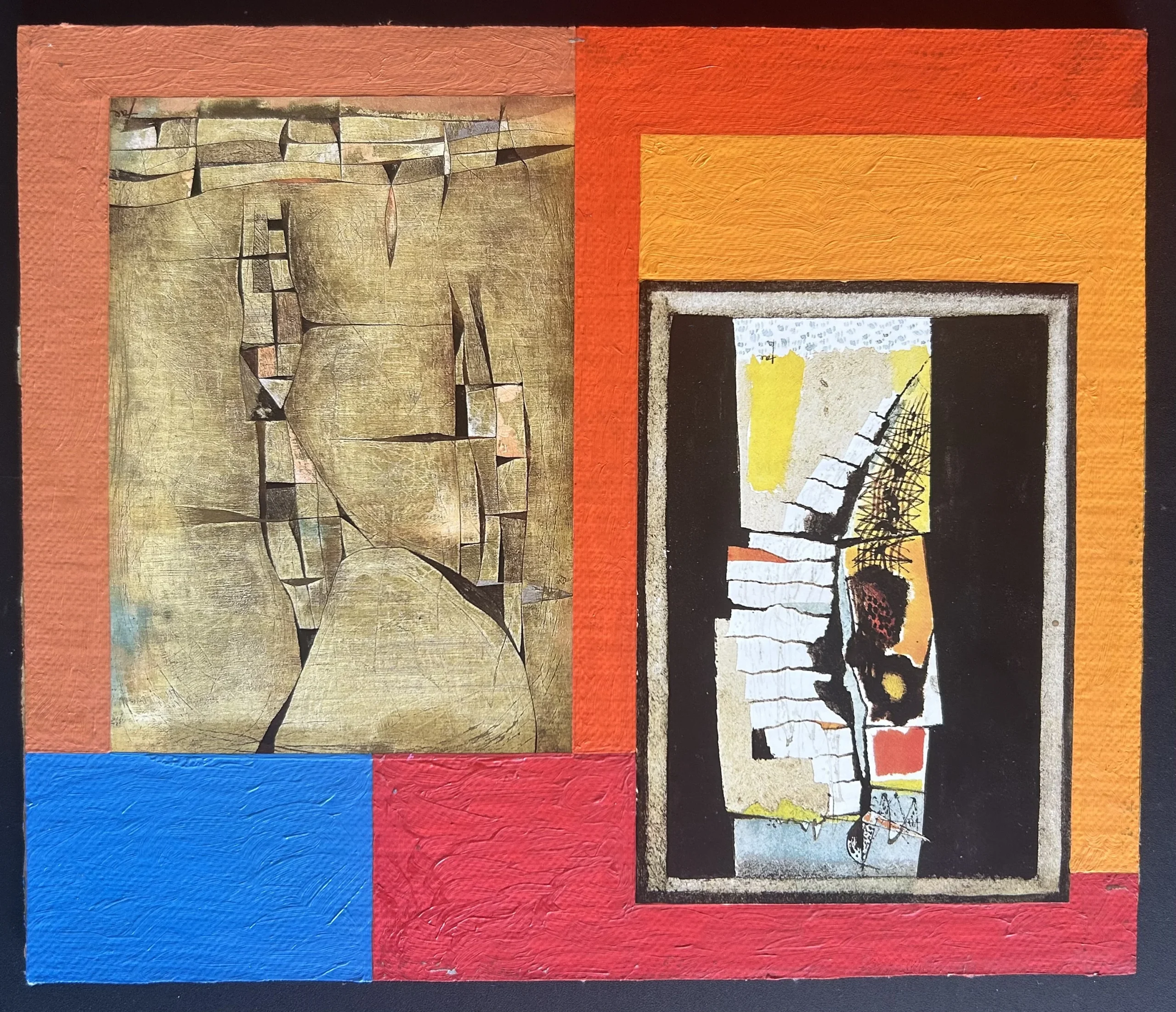 • Titel: Abstrakte Komposition mit collagierten Drucken