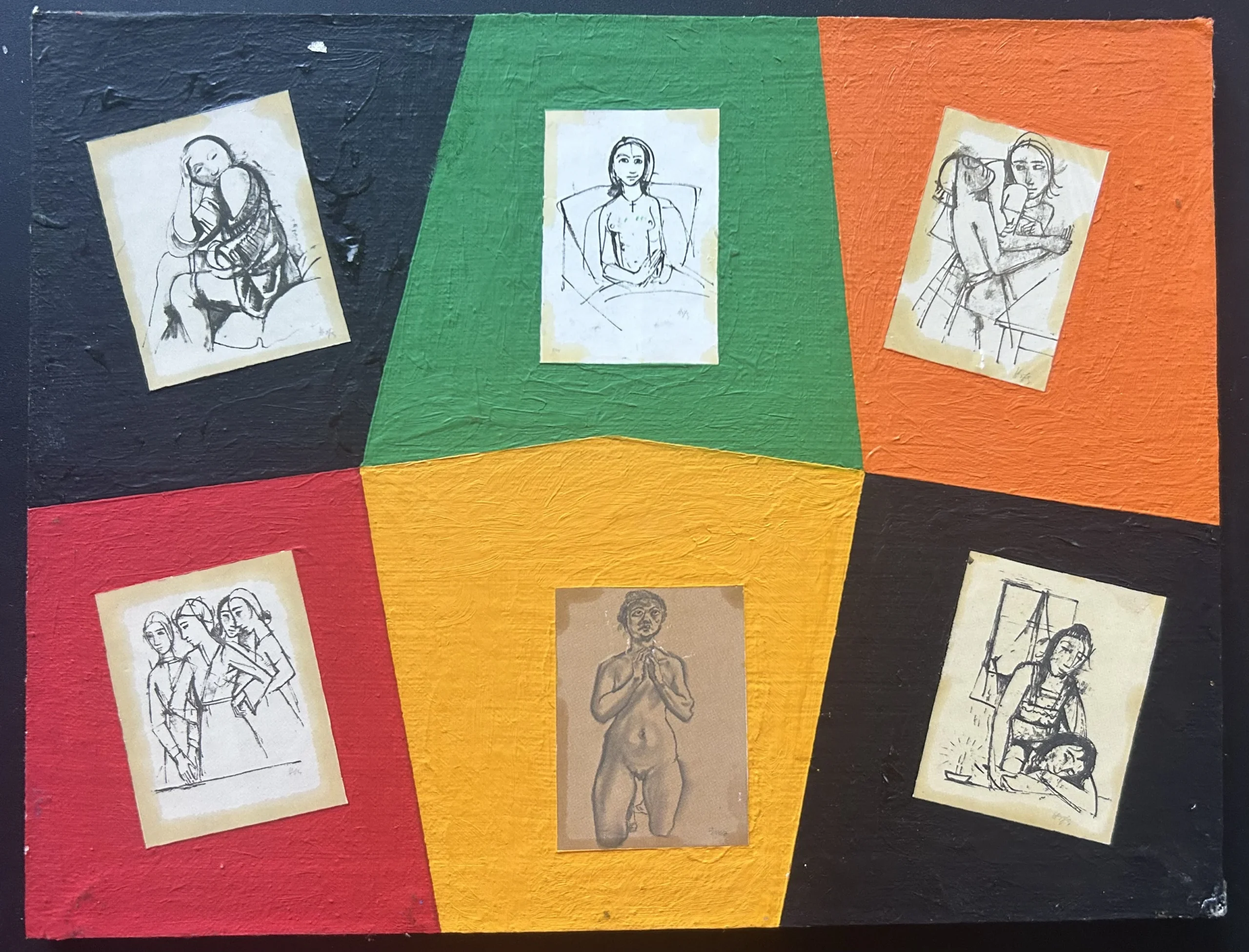 • Titel: Abstrakte Komposition mit collagierten Drucken