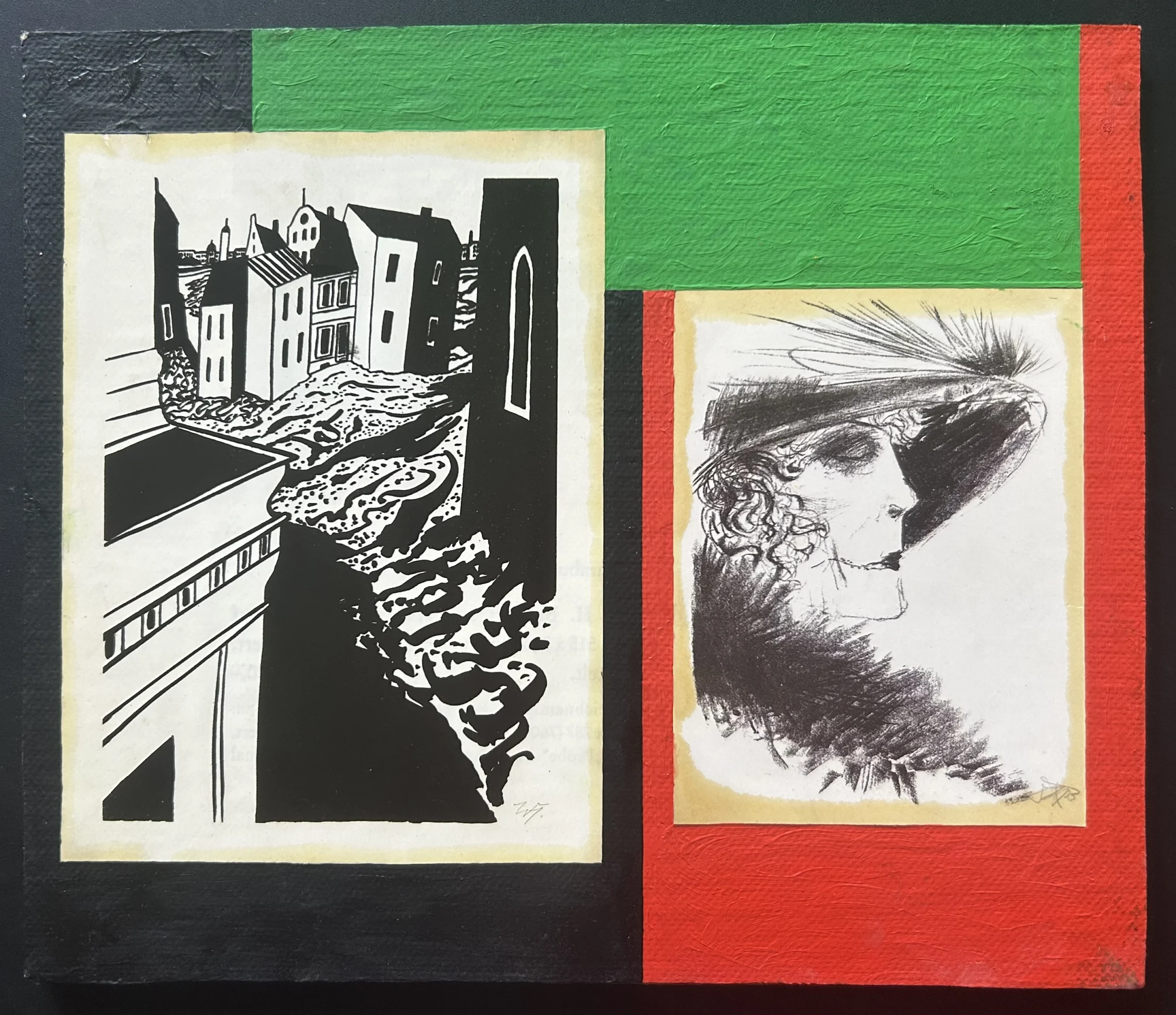 - Technik: Öl und Collage auf Platte