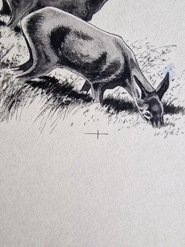 „Das Waldbuch Seite 111“ Tusche von Johannes Breitmeier Tiermaler selten