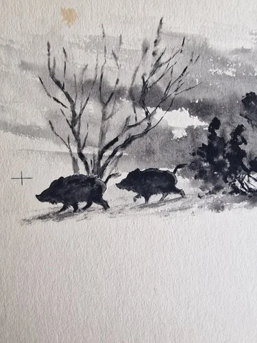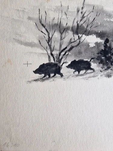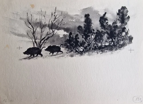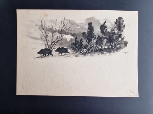 Be the first to review “„Das Waldbuch Seite 170“ Tusche von Johannes Breitmeier Tiermaler selten”