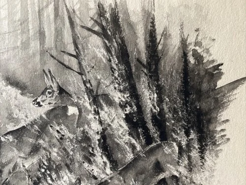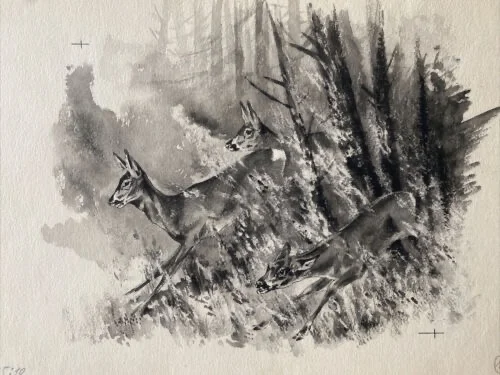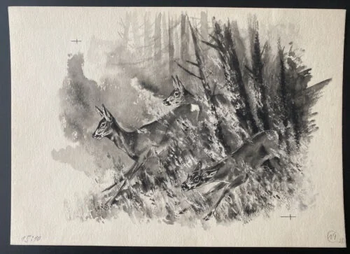 Be the first to review “„Das Waldbuch Seite 20“ Tusche von Johannes Breitmeier Tiermaler selten”