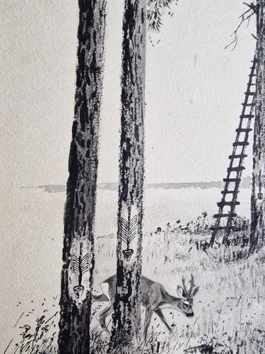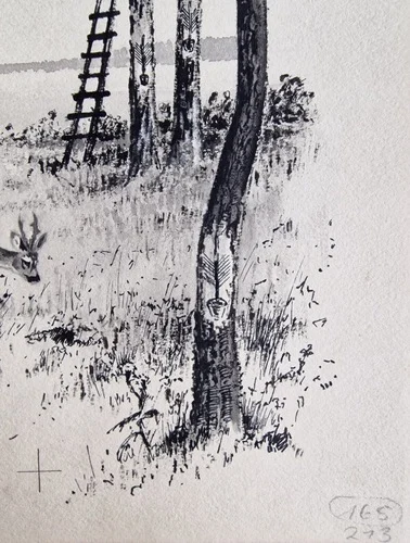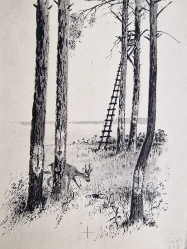 Be the first to review “„Das Waldbuch Seite 213“ Tusche von Johannes Breitmeier Tiermaler selten”
