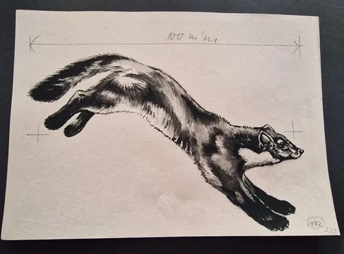 Be the first to review “„Das Waldbuch Seite 221“ Tusche von Johannes Breitmeier Tiermaler selten”