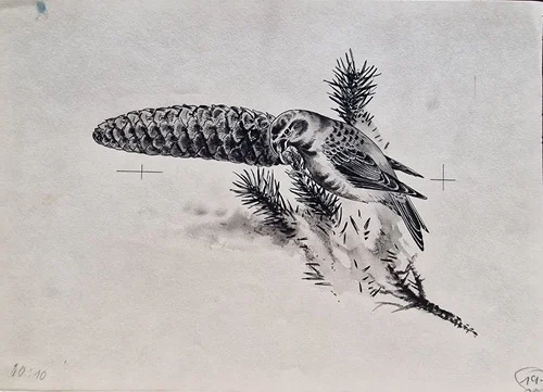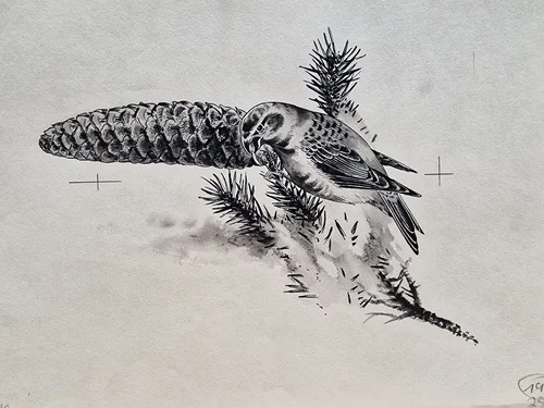 Be the first to review “„Das Waldbuch Seite 251“ Tusche von Johannes Breitmeier Tiermaler selten”