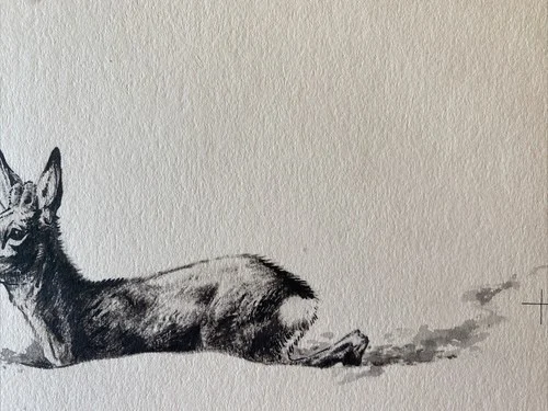 „Das Waldbuch Seite 284“ Tusche von Johannes Breitmeier Tiermaler selten