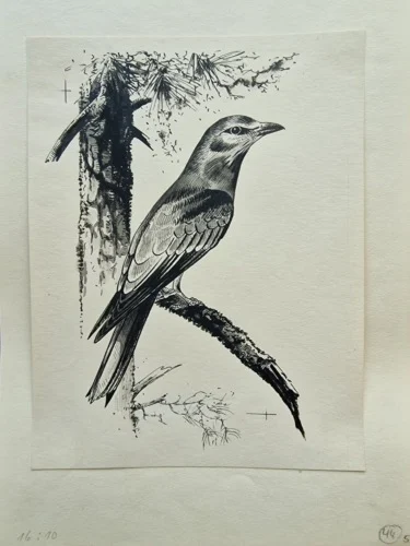 Be the first to review “„Das Waldbuch Seite 51“ Tusche von Johannes Breitmeier Tiermaler selten”