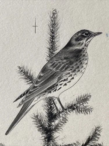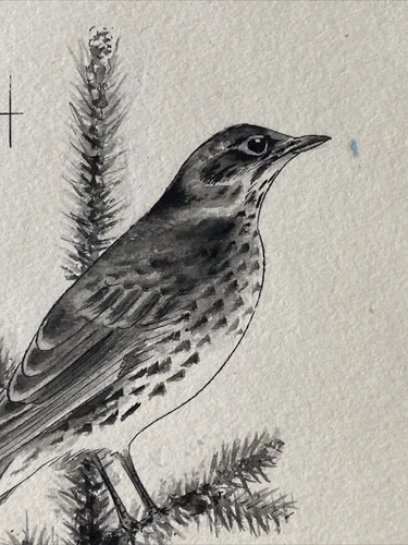 „Das Waldbuch Seite 6“ Tusche von Johannes Breitmeier Tiermaler selten