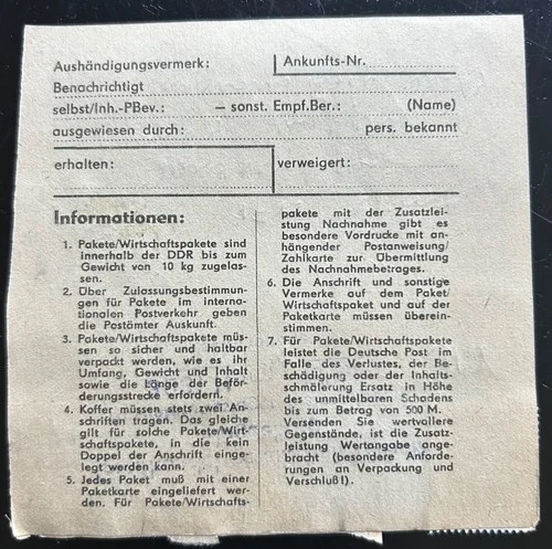 Be the first to review “DDR schöne Bedarfs-Paketkarte mit guter Frankatur zur Sammlungsergänzung #13”
