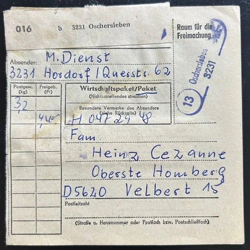 Be the first to review “DDR schöne Bedarfs-Paketkarte mit guter Frankatur zur Sammlungsergänzung #20”