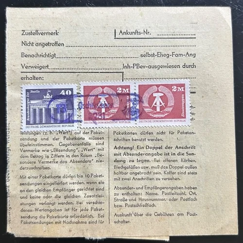 DDR schöne Bedarfs-Paketkarte mit guter Frankatur zur Sammlungsergänzung
