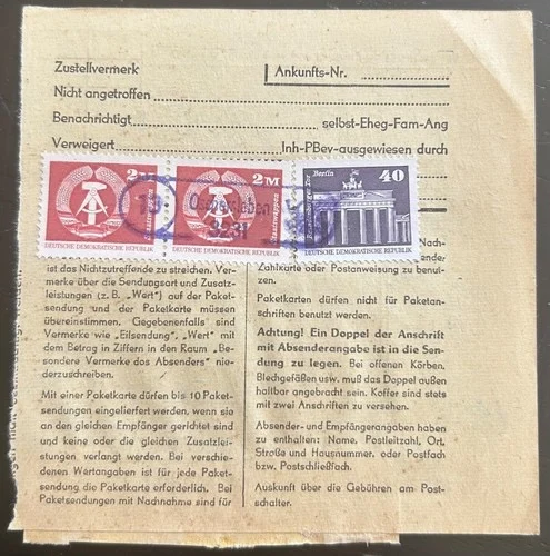 DDR schöne Bedarfs-Paketkarte mit guter Frankatur zur Sammlungsergänzung