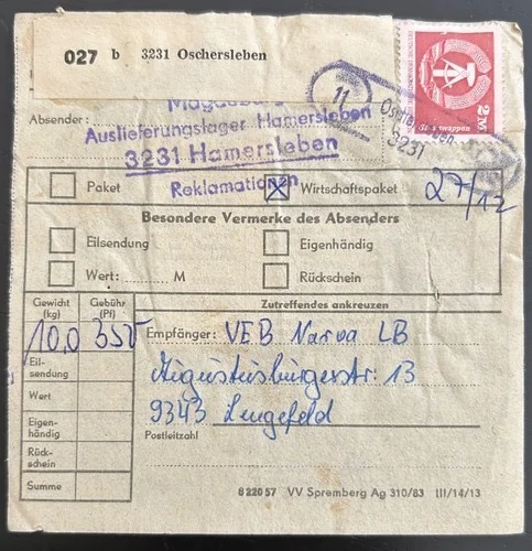 DDR schöne Bedarfs-Paketkarte mit guter Frankatur zur Sammlungsergänzung #38