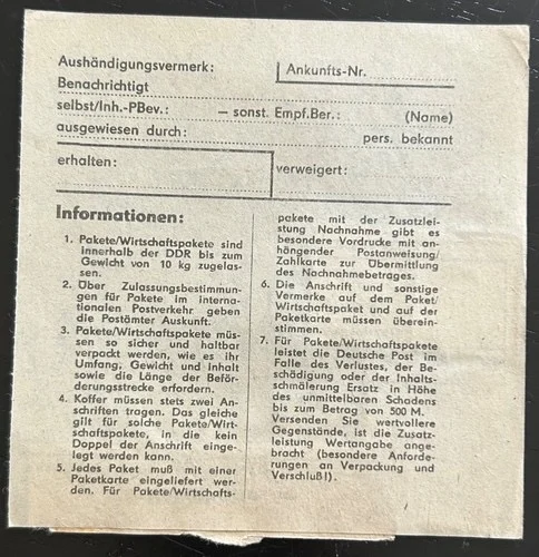 Be the first to review “DDR schöne Bedarfs-Paketkarte mit guter Frankatur zur Sammlungsergänzung #5”