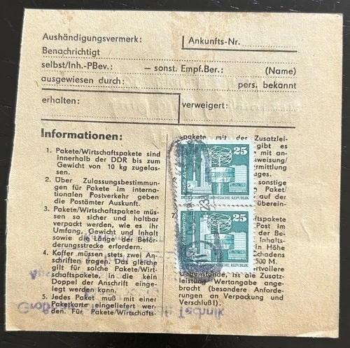 Be the first to review “DDR schöne Bedarfs-Paketkarte mit guter Frankatur zur Sammlungsergänzung #8”