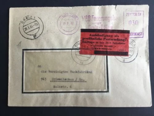 Be the first to review “DDR – ZKD schöner Brief „Auslieferung als gewöhnliche Postsendung“ #62”