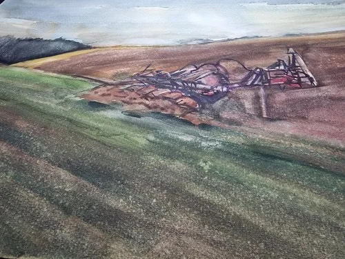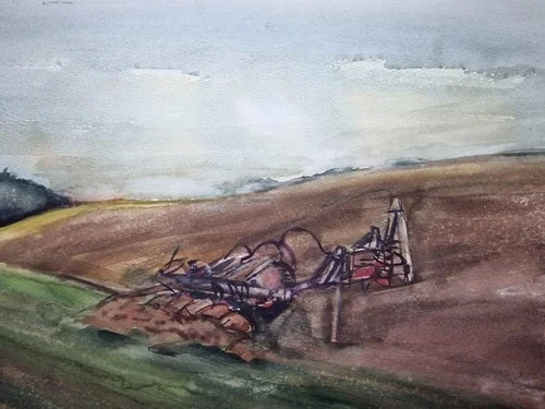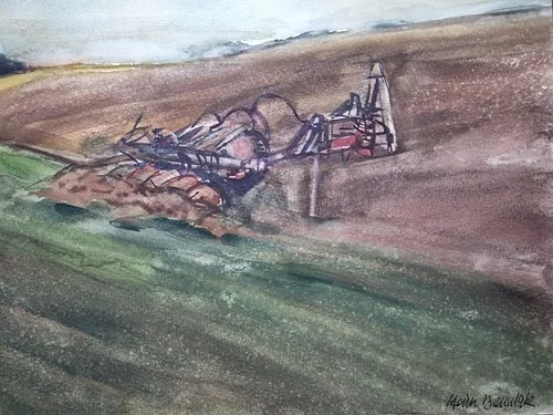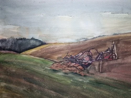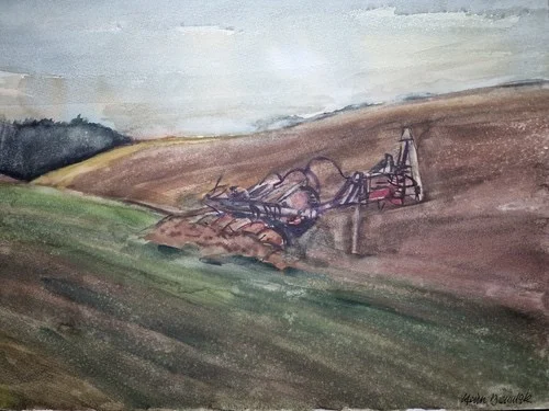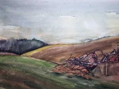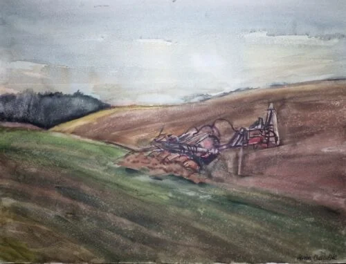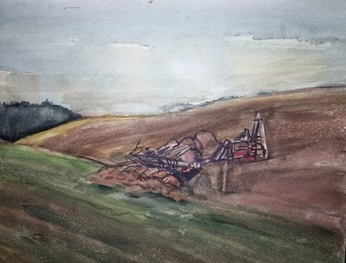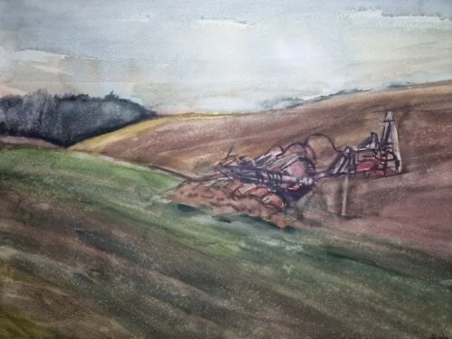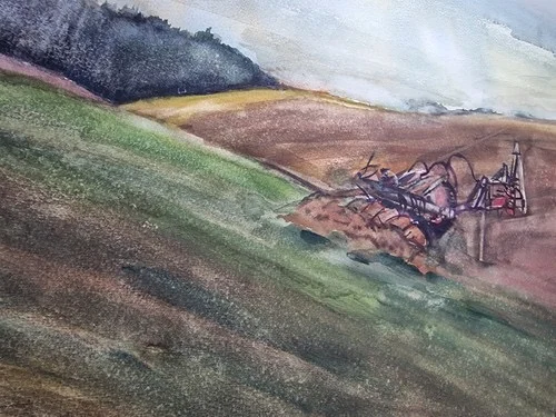 Großes Aquarell „Ackerbau Mecklenburg“ Heinz Brennigk 1925-2016 DDR Maler