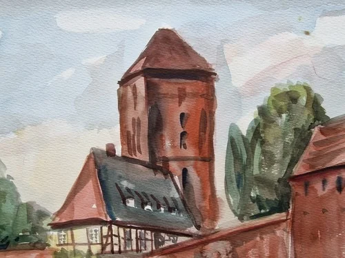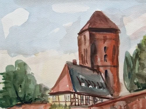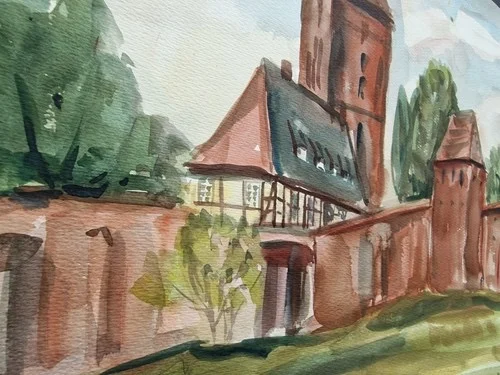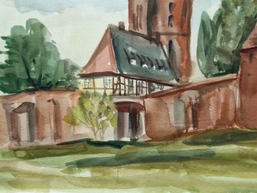 Be the first to review “Großes Aquarell „Alte Kirche“ Heinz Brennigk 1925-2016 DDR Maler”