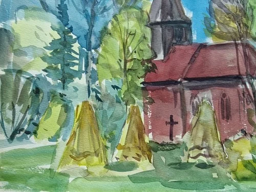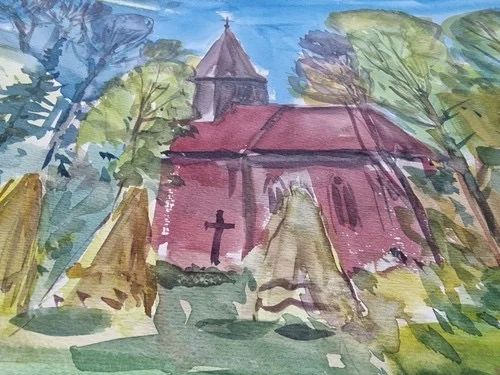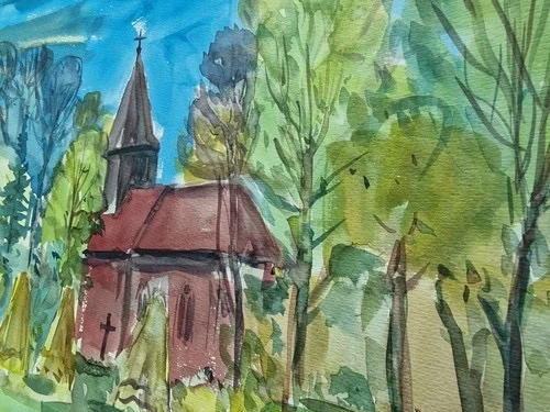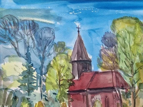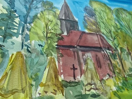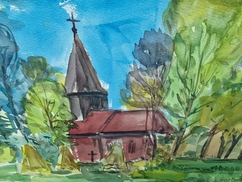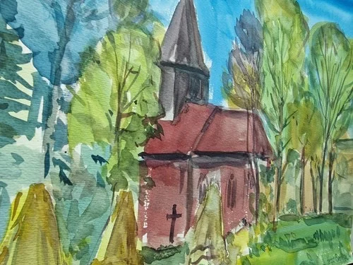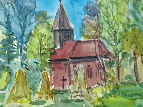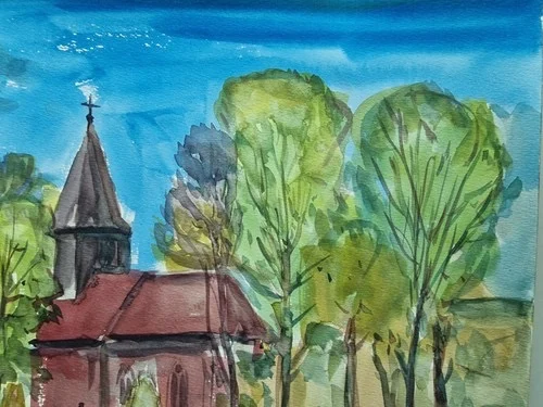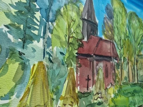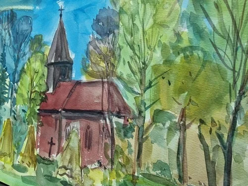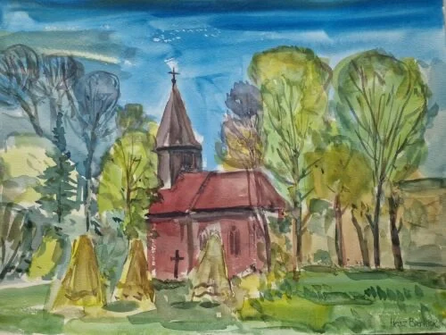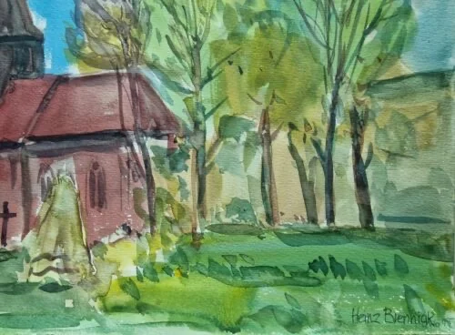 Be the first to review “Großes Aquarell „Alte Kirche“ Heinz Brennigk 1925-2016 DDR Maler”