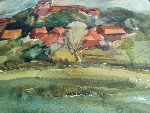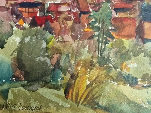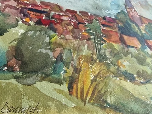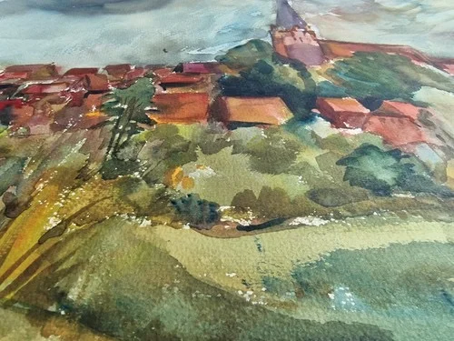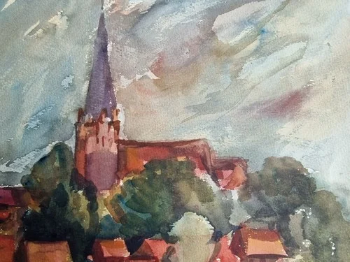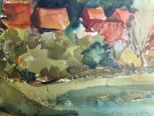 Großes Aquarell „Blick auf Basedow“ Heinz Brennigk 1925-2016 DDR Maler