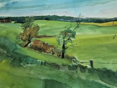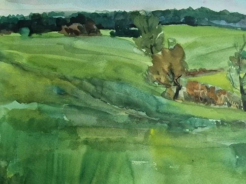 Großes Aquarell „Felder und Wiesen“ Heinz Brennigk 1925-2016 DDR Maler
