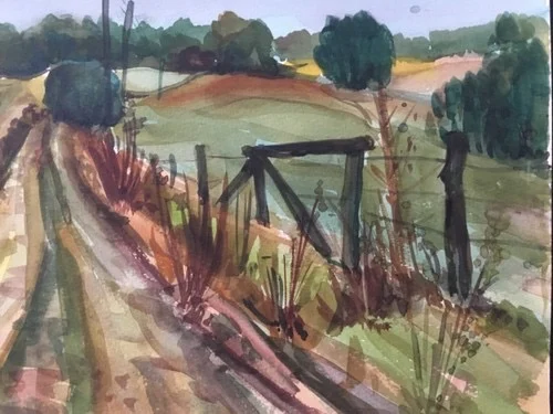 Großes Aquarell „Feldweg in Witzin MVP“ Heinz Brennigk 1925-2016 DDR Maler