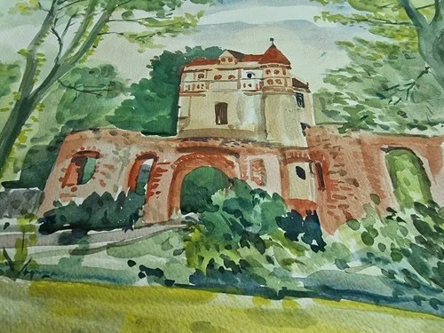 Großes Aquarell „Freyenstein“ Heinz Brennigk 1925-2016 DDR Maler
