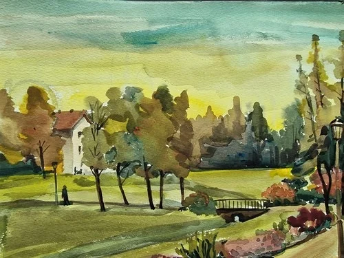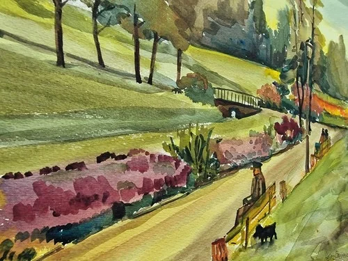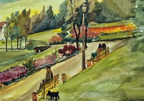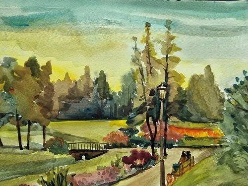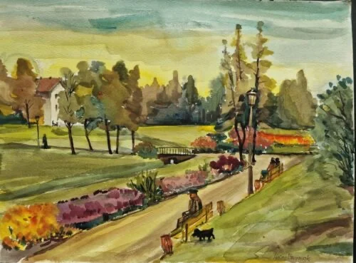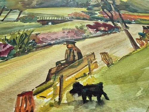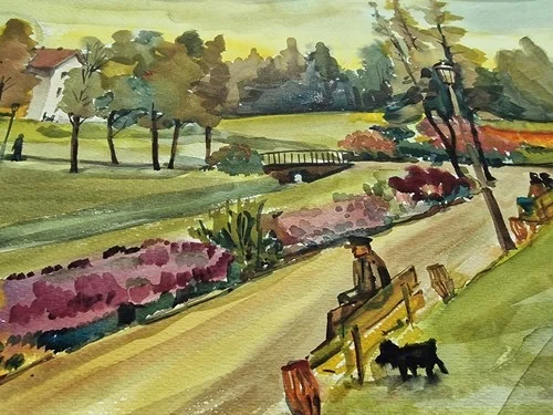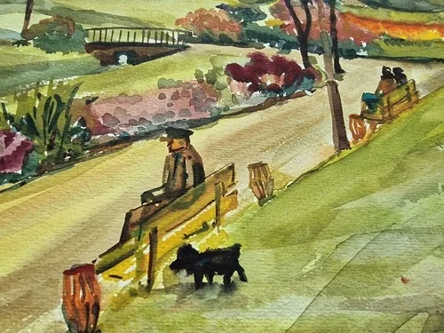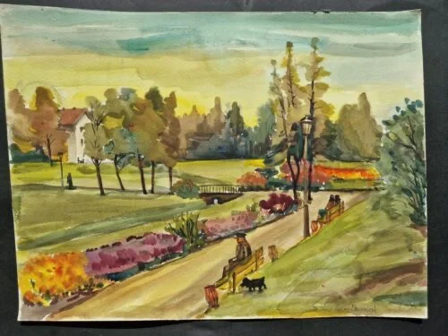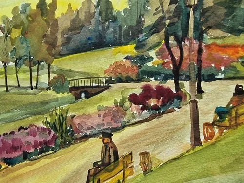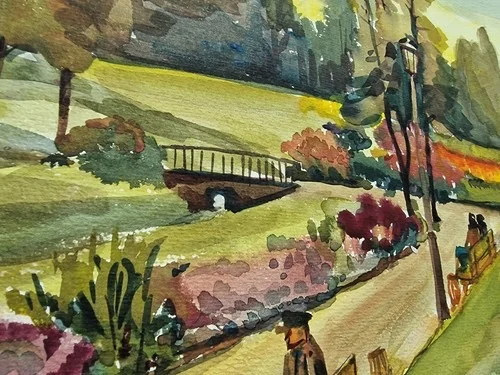 Großes Aquarell „Im Stadtpark“ Heinz Brennigk 1925-2016 DDR Maler