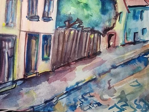 Großes Aquarell „Kleinstadt“ Heinz Brennigk 1925-2016 DDR Maler
