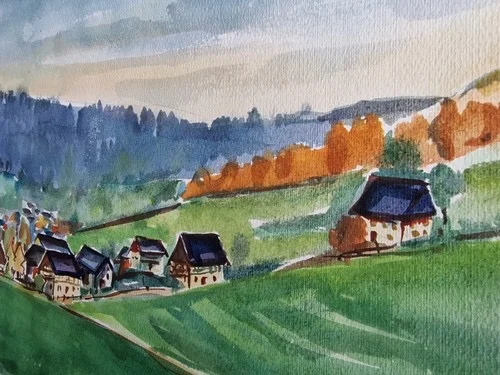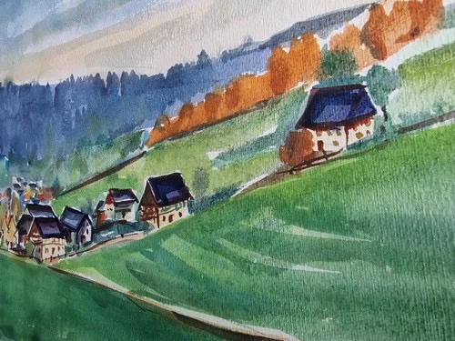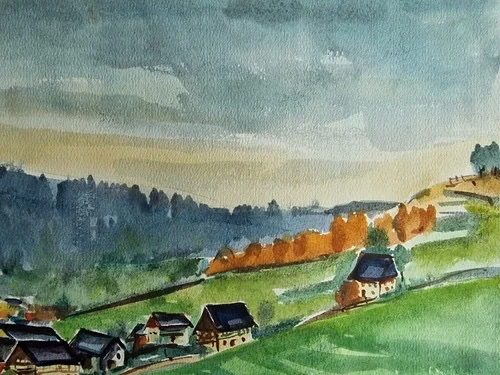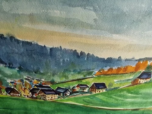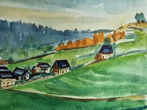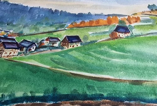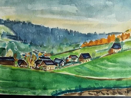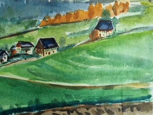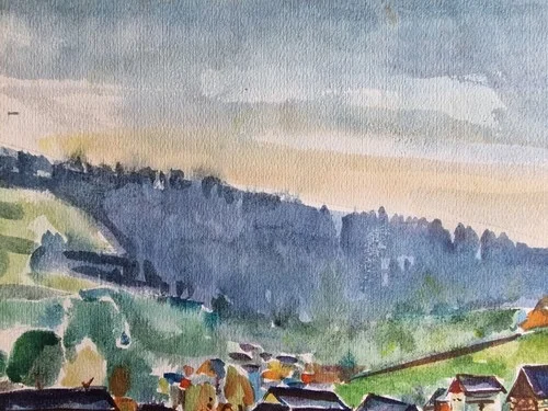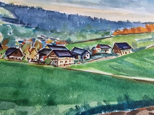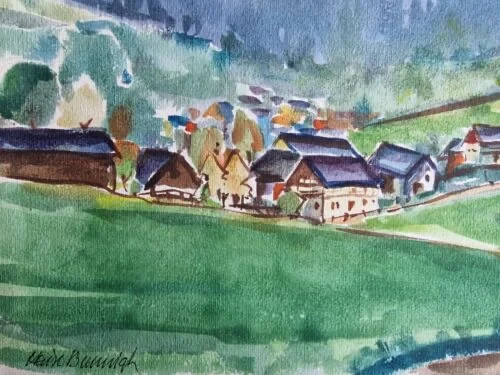 Be the first to review “Großes Aquarell „Sommerdorf“ Heinz Brennigk 1925-2016 DDR Maler”