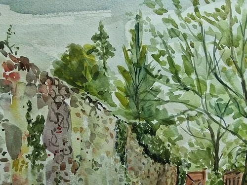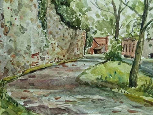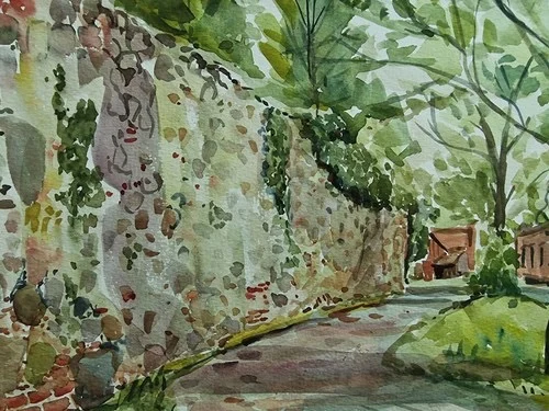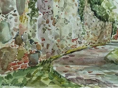 Großes Aquarell „Stadtmauer Heiligengrube“ Heinz Brennigk 1925-2016 DDR Maler