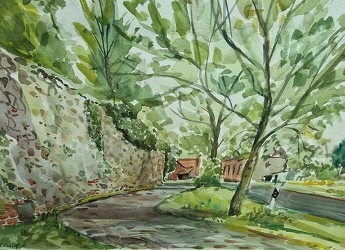 Be the first to review “Großes Aquarell „Stadtmauer Heiligengrube“ Heinz Brennigk 1925-2016 DDR Maler”