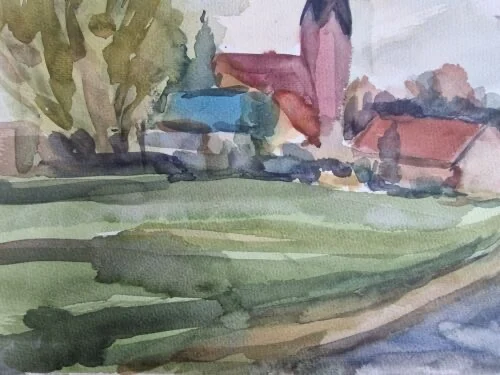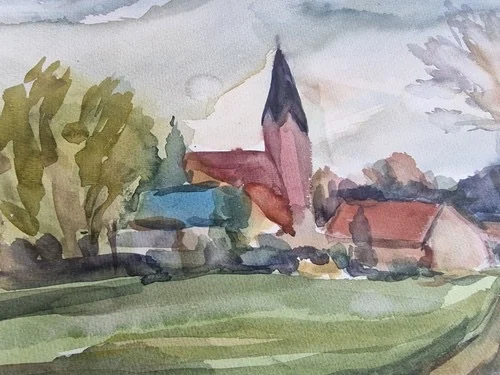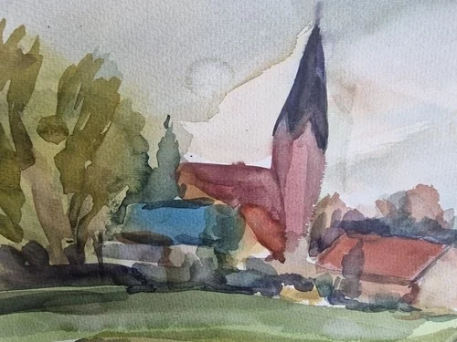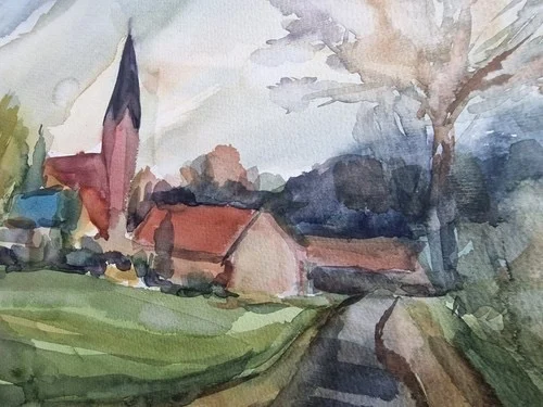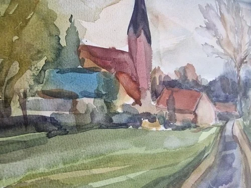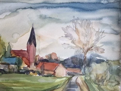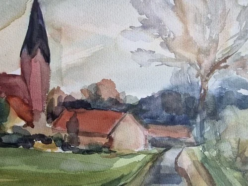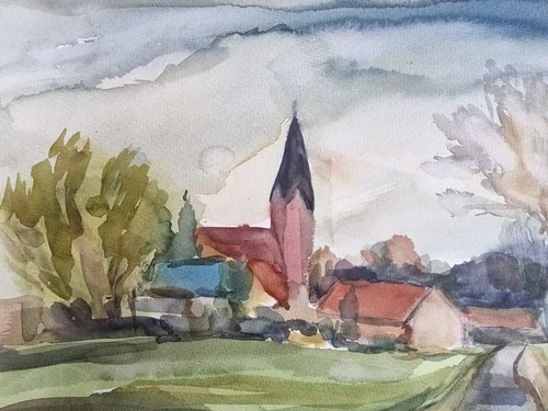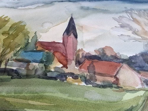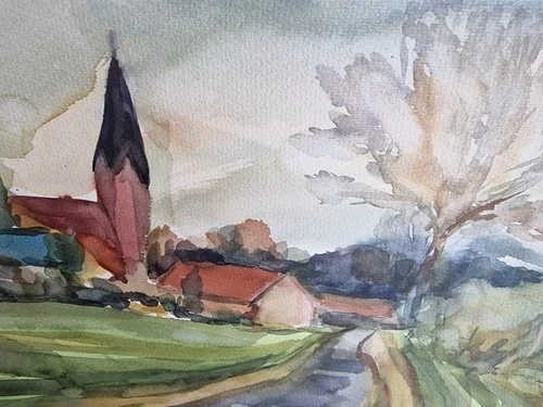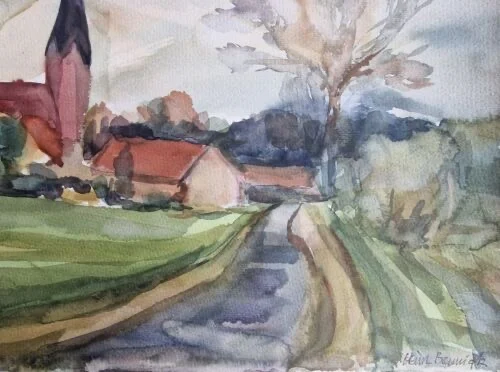 Be the first to review “Großes Aquarell „Straße zur Kirche“ Heinz Brennigk 1925-2016 DDR Maler”