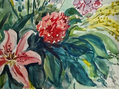 Großes Aquarell „Super Blumenstrauß“ Heinz Brennigk 1925-2016 DDR Maler