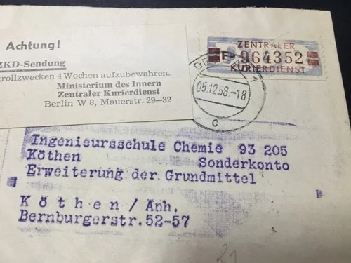 ZKD Mi.-Nr. 21 F auf Bedarfsbrief mit sehr seltenen Aufkleber