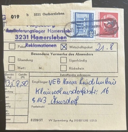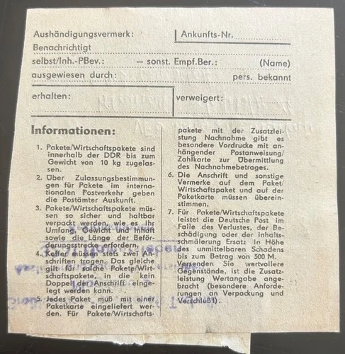 Be the first to review “DDR schöne Bedarfs-Paketkarte mit guter Frankatur zur Sammlungsergänzung #27”