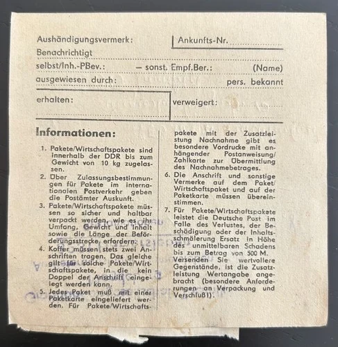 Be the first to review “DDR schöne Bedarfs-Paketkarte mit guter Frankatur zur Sammlungsergänzung #32”