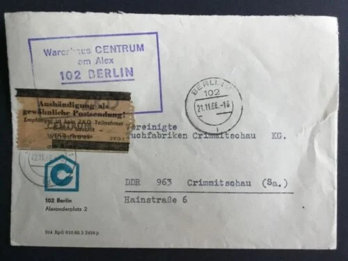 Be the first to review “DDR – ZKD schöner Brief „Auslieferung als gewöhnliche Postsendung“ #23”
